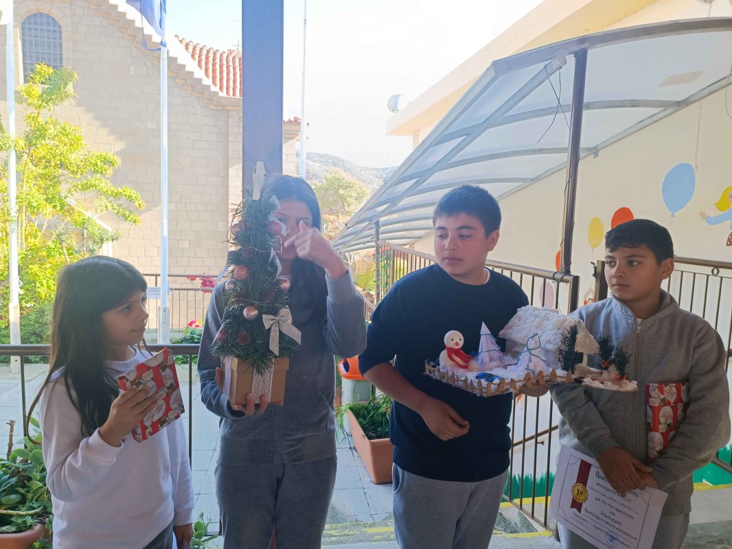 Μέσα στις δράσεις Δεκεμβρίου ήταν και η κατασκευή ενός χριστουγεννιάτικου στολιδιού απο ανακυκλώσιμα υλικά ούτως ώστε να βραβευθούν τα πρώτα τρία, αλλά και να λάβουν τιμητικό δίπλωμα συμμετοχής όσα παιδιά κατέβαλαν προσπάθεια για αυτόν τον διαγωνισμό!