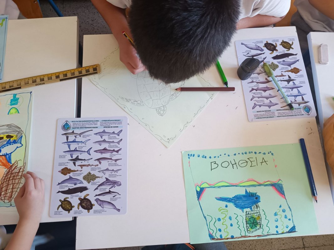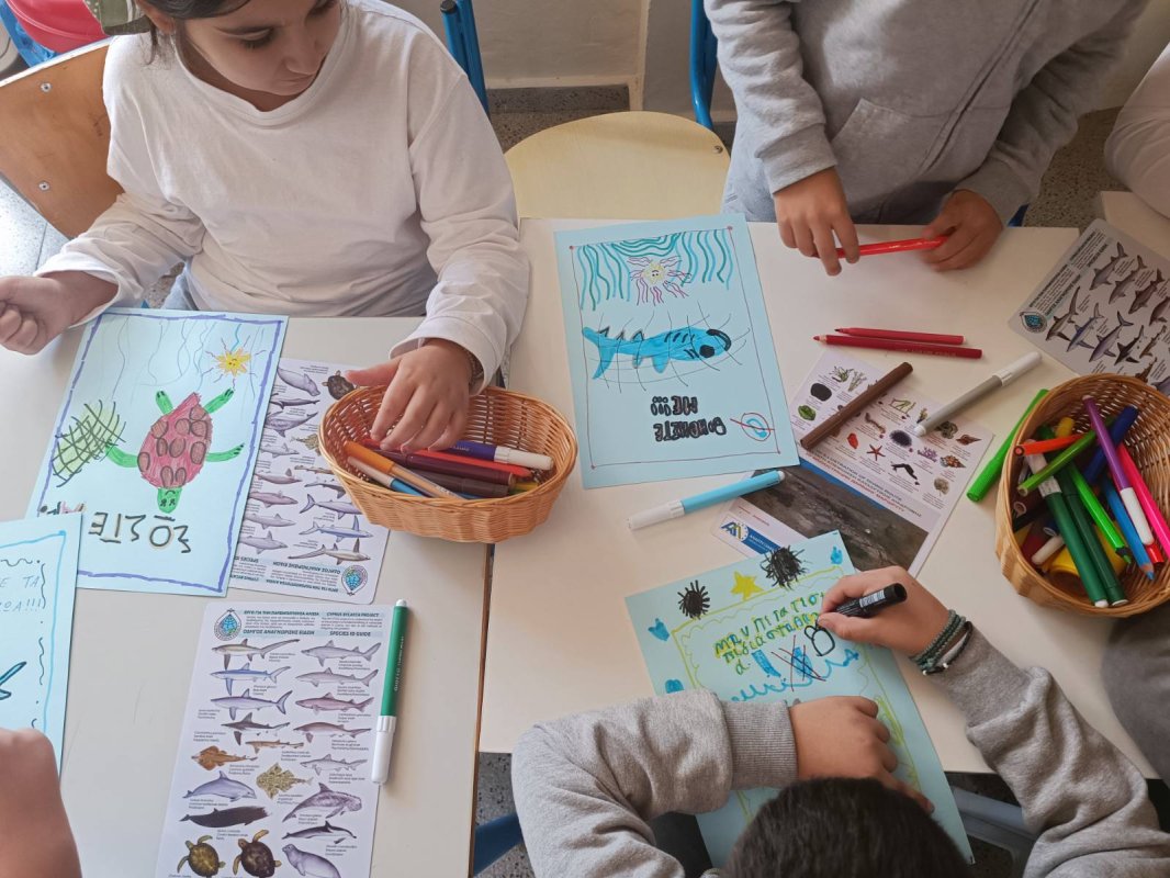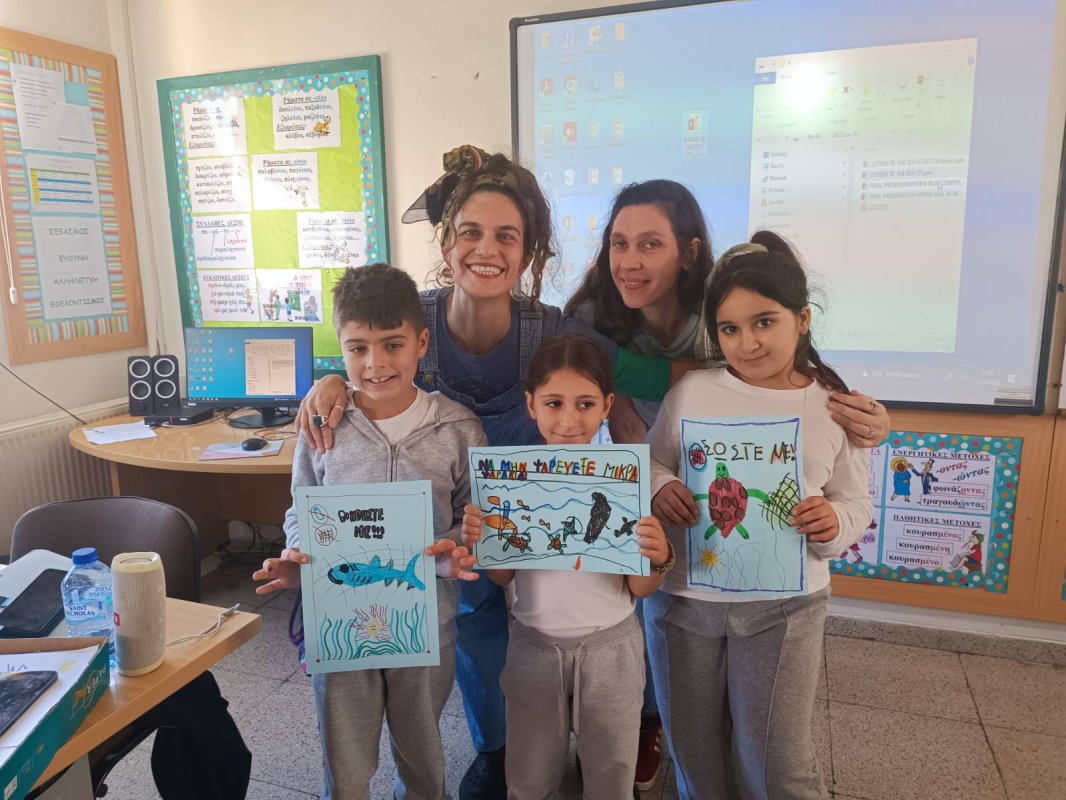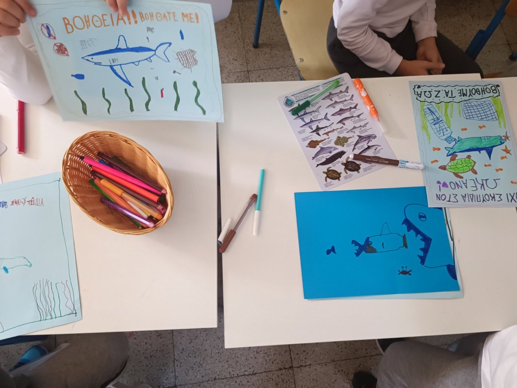 Εργαστήρι "Το Γαλάζιο Συνέδριο" σχεδιασμένο από τη Ρεβέκκα Κατσαρή, Χλόη Φινν και Χριστίνα Χαραλαμπίδου-Πίττα: Στον δρόμο μας για να γίνουμε ένα Μπλε σχολείο και να ευαισθητοποιήσουμε όλοι μάζι την κοινότητά μας, έλαβε χώρα στον σχολικό μας χώρο, ένα υπέροχο εργάστηρι με τίτλο "Το Γαλάζιο Συνέδριο", στο οποίο τα παιδιά παρακολούθησαν θαλάσσιους οργανισμούς που βρίσκονται σε κίνδυνο κυρίως λόγω της ανθρώπινης δραστηριότητας. Τα "δίχτυα-φάντασμα", καθώς και τους θαλάσσιους βιολόγους εν δράσει. Στο τέλος, τα παιδιά κλήθηκαν να φτιάξουν μια δική τους αφίσα για να διαμαρτυρηθούν, αλλά και να επιστήσουν την προσοχή της ανθρωπότητας για τον κίνδυνο που εγκυμονεί η θαλάσσια ρύπανση στον πλανήτη μας! Η αφίσα δημιουργήθηκε με την καθοδήγηση της σκιτσογράφου Χλόης Φινν.