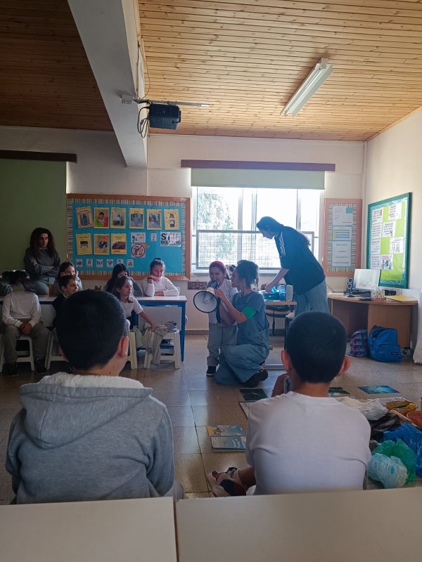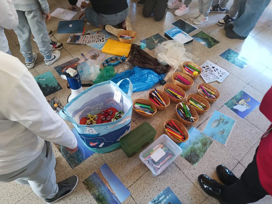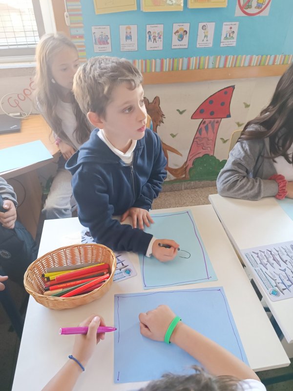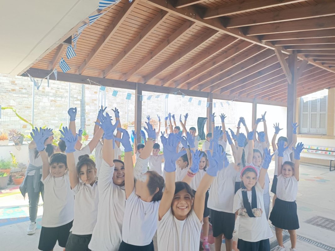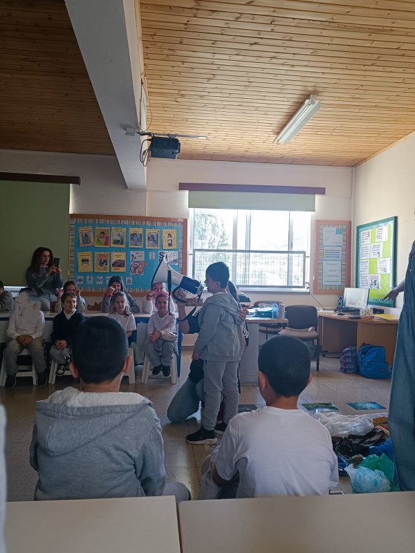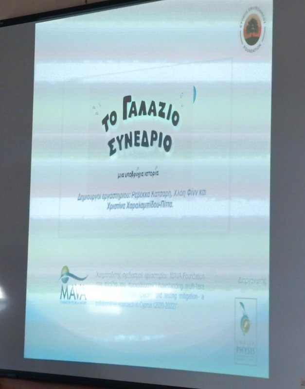 Εργαστήρι "Το Γαλάζιο Συνέδριο" σχεδιασμένο από τη Ρεβέκκα Κατσαρή, Χλόη Φινν και Χριστίνα Χαραλαμπίδου-Πίττα: Στον δρόμο μας για να γίνουμε ένα Μπλε σχολείο και να ευαισθητοποιήσουμε όλοι μάζι την κοινότητά μας, έλαβε χώρα στον σχολικό μας χώρο, ένα υπέροχο εργάστηρι με τίτλο "Το Γαλάζιο Συνέδριο", στο οποίο τα παιδιά παρακολούθησαν θαλάσσιους οργανισμούς που βρίσκονται σε κίνδυνο κυρίως λόγω της ανθρώπινης δραστηριότητας. Τα "δίχτυα-φάντασμα", καθώς και τους θαλάσσιους βιολόγους εν δράσει. Στο τέλος, τα παιδιά κλήθηκαν να φτιάξουν μια δική τους αφίσα για να διαμαρτυρηθούν, αλλά και να επιστήσουν την προσοχή της ανθρωπότητας για τον κίνδυνο που εγκυμονεί η θαλάσσια ρύπανση στον πλανήτη μας! Η αφίσα δημιουργήθηκε με την καθοδήγηση της σκιτσογράφου Χλόης Φινν.
