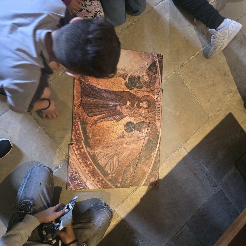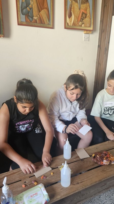 Μία επίσκεψη στο Κίτι, στην επαρχία Λάρνακος, στην εκκλησία της Παναγίας της Αγγελόκτιστης με την τόσο σπουδαία ιστορία, έφερε τα παιδιά μας κοντά στη γνωριμία και τη δημιουργία του δικού τους ψηφιδωτού. Άκουσαν την ιστορία της εκκλησίας, αλλά και του ψηφιδωτού για τη χρήση του στην εκκλησία αυτή, άναψαν το κεράκι τους, προσκύνησαν και αγαλλίασαν μπροστά στην εντυπωσιακή αυτή εκκλησία. Κατόπιν, τα παιδιά έπαιξαν, ξεκουράστηκαν και έφυγαν βάζοντας στη βαλίτσα των αναμνήσεων και εμπειριών τους, ακόμη μια εμπειρία που τους έφερε πιο κοντά στην παράδοση του τόπου μας και τη θρησκεία μας.