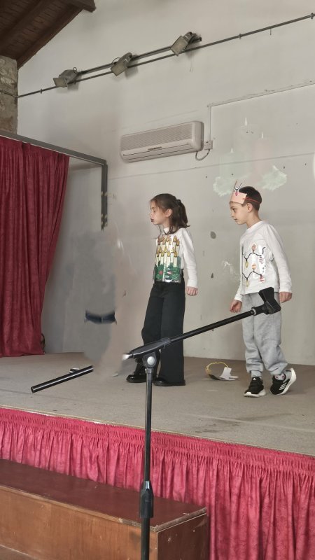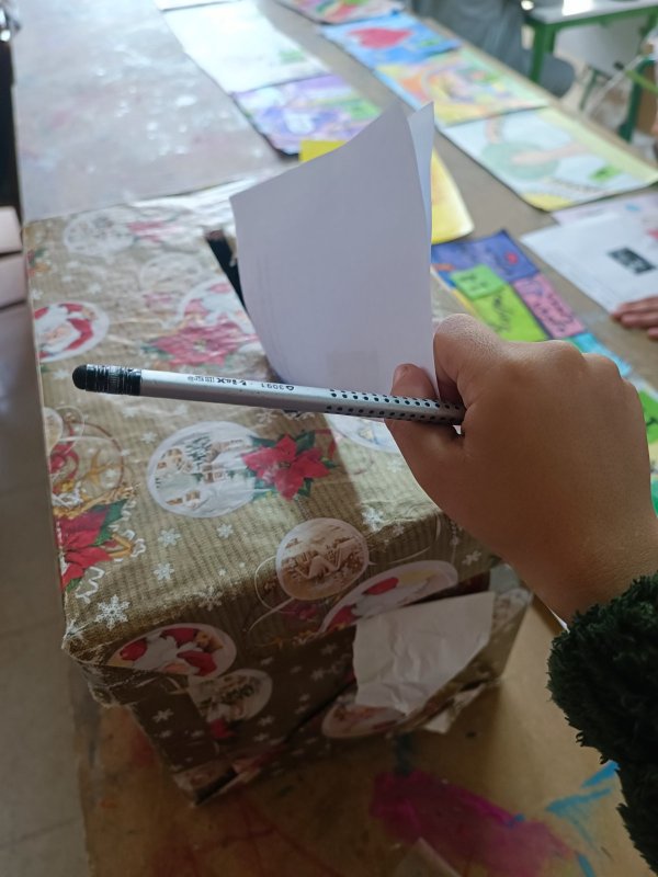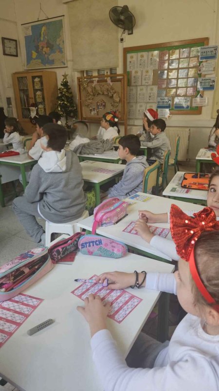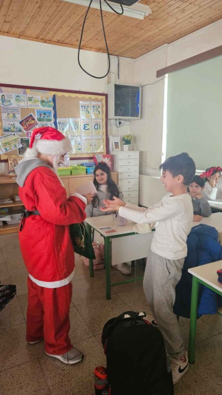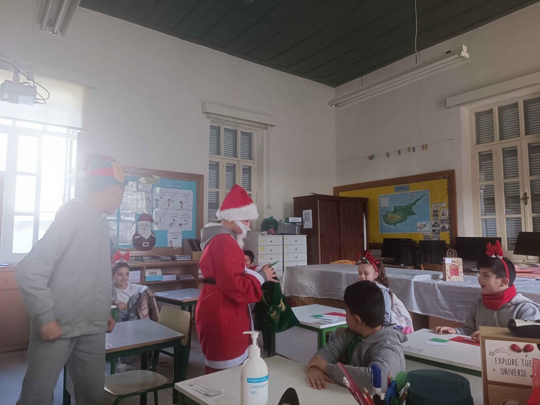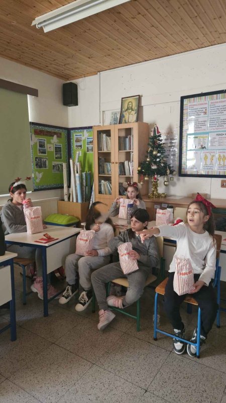 Καθώς και την επίσκεψη από τάξη σε τάξη για το μοίρασμα της χριστουγεννιάτικης μας αλληλογραφίας στο σχολείο από μαθητή της Στ' τάξης του σχολείου μας ντυμένο στα κόκκινα σε ρόλο Άγιου Βασίλη. Στιγμές από την ταινία μας με ποπ κορν, αλλά και από την τόμπολα-μπίνγκο!