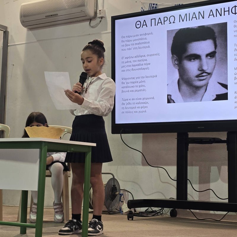Αξίζει να σημειωθεί, πως την προηγούμενη μέρα, μοιράστηκε στην κοινότητα από μαθητές της Ε' και Στ' και δόθηκε σε όλα τα παιδιά, ένα τρίπτυχο, στο οποίο αναγράφονται σημαντικά ιστορικά γεγονότα που αφορούν την κυπριακή ιστορία σε τρεις γλώσσες (ελληνικά, αγγλικά και γερμανικά).