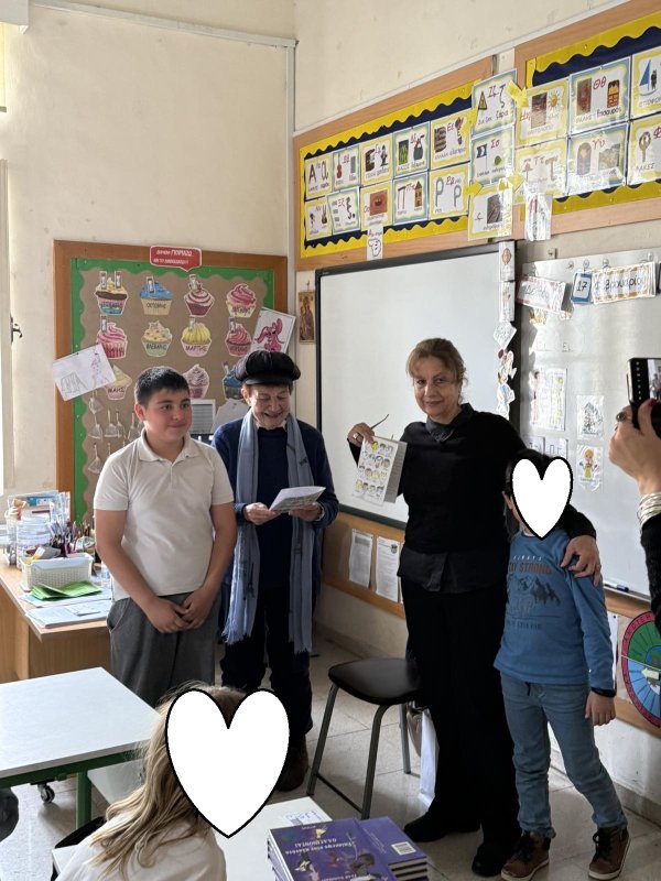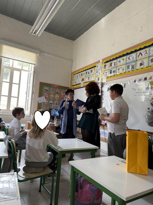 Επίσκεψη στο σχολείο μας από την κυρία Έλλη Παιονίδου, συγγραφέας παιδικών και μη λογοτεχνικών βιβλίων. Μέσω της κυρίας Νεοκλέους, εις μνήμην του συζύγου της, η οποία δώρισε στα παιδιά του σχολείου μας, παραμύθια της συγγραφέως Παιονίδου, τα παιδιά ήρθαν σε επαφή με τη συγγραφέα, έκαναν τις ερωτήσεις τους, μοιράστηκαν απόψεις και εισέπραξαν και έδωσαν αγάπη στις φιλοξενούμενες του σχολείου μας, που πάντα μας τιμούν με την αγάπη τους και τις δωρέες τους.