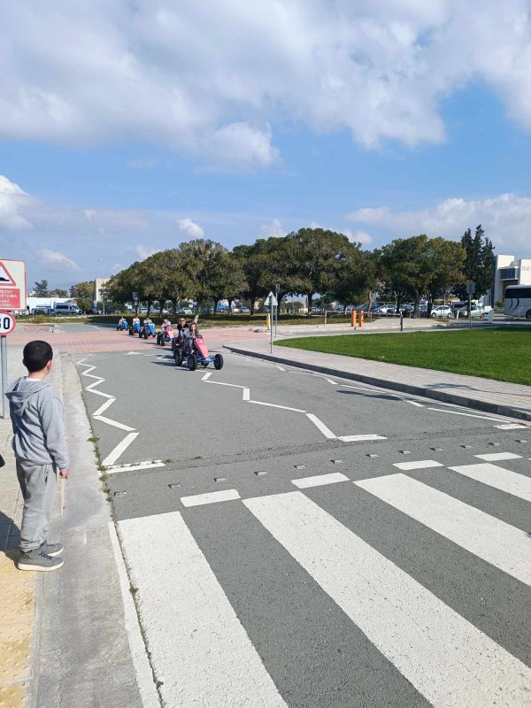 Τα παιδάκια του σχολείου μας επισκέφτηκαν το Πάρκο Κυκλοφοριακής Αγωγής στη Λευκωσία για να αποκτήσουν σωστή συμπεριφορά ως πεζοί, ως ποδηλάτες αλλά και ως οδηγοί! Μέσα από παρουσίαση και διαδραστική συμμετοχή των παιδιών με την αστυνομικό, αλλά και την πρακτική εξάσκηση των μικρών μαθητών, ως πεζοί να κυκλοφορούν και να χρησιμοποιούν σωστά τις διαβάσεις πεζών (ζέμπρα και πελεκάνος), μα και ως ποδηλάτες με τα ποδήλατα και το κράνος τους, τα αυτοκινητάκια με πετάλ οι μεγάλοι μαθητές, έζησαν μια πάρα πολύ ωραία εμπειρία και έμαθαν πολλά πράγματα σχετικά με την κυκλοφορία στον δρόμο.