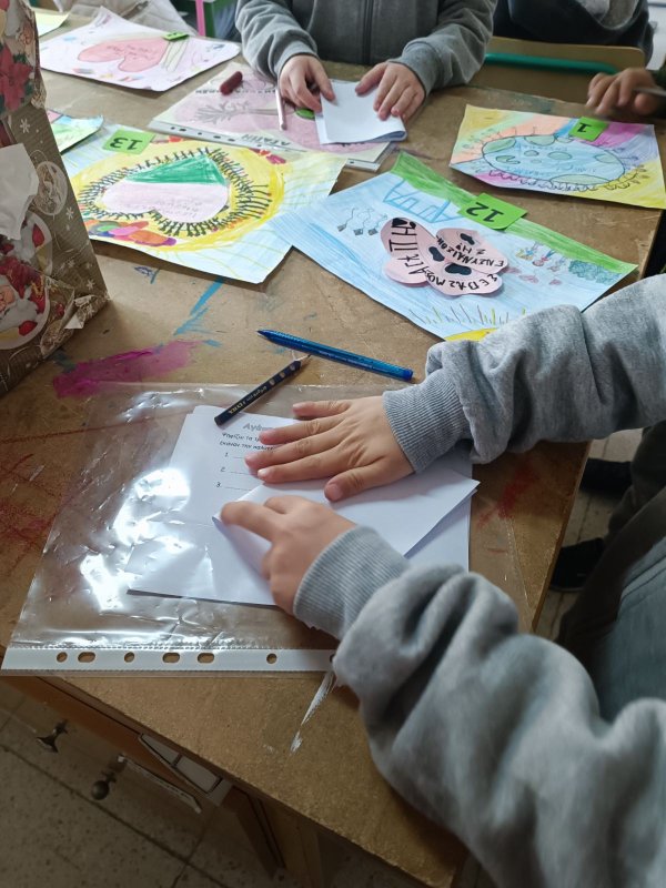 Τα παιδιά του σχολείου μας καλέστηκαν να δημιουργήσουν τη δική τους μοναδική, ξεχωριστή ζωγραφιά, με τις λέξεις που έχουμε ως στόχο μας σαν σχολική μονάδα για να τις καλλιεργήσουμε αλλά και να τις υιοθετήσουμε. Λέξεις όπως είναι η ενσυναίσθηση, η αγάπη και ο σεβασμός! Όσα παιδάκια θέλησαν να συμμετέχουν, πήραν το δίπλωμα συμμετοχής και βραβεύτηκαν τα υπόλοιπα 4 με 2 ισοψηφίες. Παρακάτω, θα δείτε στιγμές από την ψηφοφορία και τη βράβευση με τα έργα των παιδιών. Επίσης, ένα παιδάκι ήταν απών όταν κέρδισε κι έτσι ο αδερφός του, μας παρουσίασε και το δικό του έργο, εφόσον βραβεύτηκαν και οι δυο με τα δύο ξεχωριστά έργα τους.