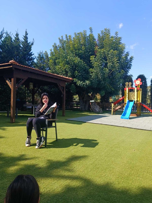 Ακολούθως, επισκεφτήκαμε το Q Garden (φυτώριο), ούτως ώστε τα παιδιά να παίξουν κυνήγι χαμένου θησαυρού μαθαίνοντας ταυτόχρονα για τα διάφορα φυτά, αλλά και κάποιου είδους ζώα. Ξεκουράστηκαν, παίζοντας και τρώγωντας, αλλά και ακούγοντας την αφήγηση ενός παραμυθιού από την κ. Θεοδώρα, ένα παραμύθι που είναι γεμάτο μηνύματα και τα παιδιά καλούνταν να εκμαιεύσουν μέσα από αυτό τις διδαχές του.
