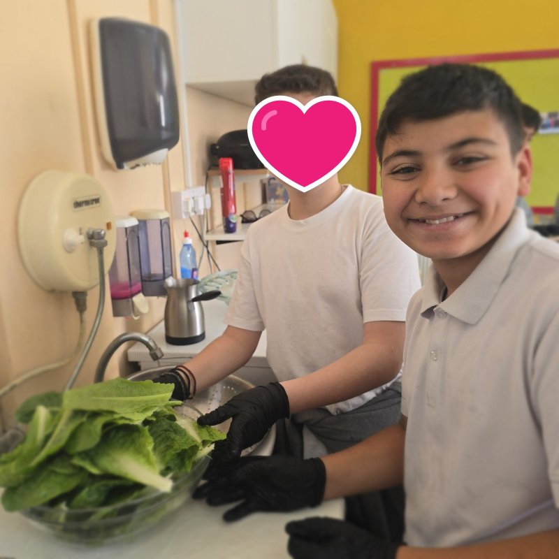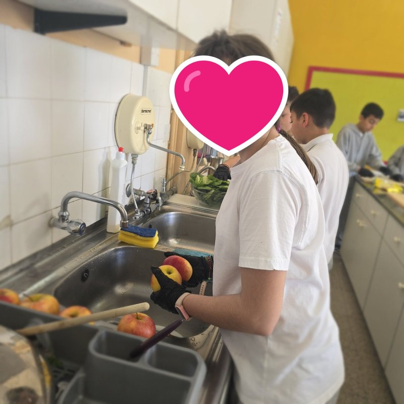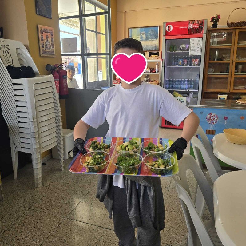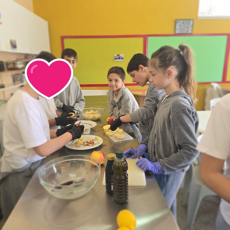 Κι επειδή δε μένουμε στα λόγια με τον δικό μας λαχανόκηπο στο σχολείο μας, σήμερα, φτιάξαμε τη δική μας σαλάτα με λαχανικά δικής μας παραγωγής, όπως το θεσπέσιο μαρούλι που πήραμε ως πρώτη ύλη και εφοδιάσαμε μαθητές αλλά και προσωπικό του σχολείου, με μπόλικη ενέργεια, βάζοντας και περαιτέρω υλικά έτσι για την τσαχπινιά και την υγιεινή διατροφή που προωθούμε ως σχολική μονάδα! Ήταν πραγματικά πολύ απολαυστική η σαλάτα μας αλλά και άκρως δροσερή! :)