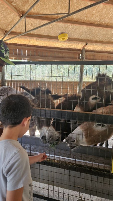 Φτάσαμε, αισίως, στην τελική εκδρομή του σχολείου μας! Μία εκδρομή που έμεινε αξέχαστη στα παιδιά, καθώς, ήρθαν πιο κοντά στη φύση. Γνώρισαν γαϊδουράκια, άλογα, αγελάδες, ταύρους, κατσίκια, παπαγάλους, χοιροκούνελα, παγώνια, λαγουδάκια, γουρουνάκια, κοτούλες ελευθέρας βοσκής που βόλταραν μαζί τους, πάπιες, χήνες κι άλλα τόσα...Τάισαν γαϊδουράκια και είδαν πώς τρώει και η στρουθοκάμηλος! Είδαν το μέγεθος ενός αυγού στρουθοκάμηλου. Χάιδεψαν ένα μικρό κατσικάκι...έπαιξαν στα παιχνίδια, διασκέδασαν, έφαγαν και πέρασαν καταπληκτικά !!!