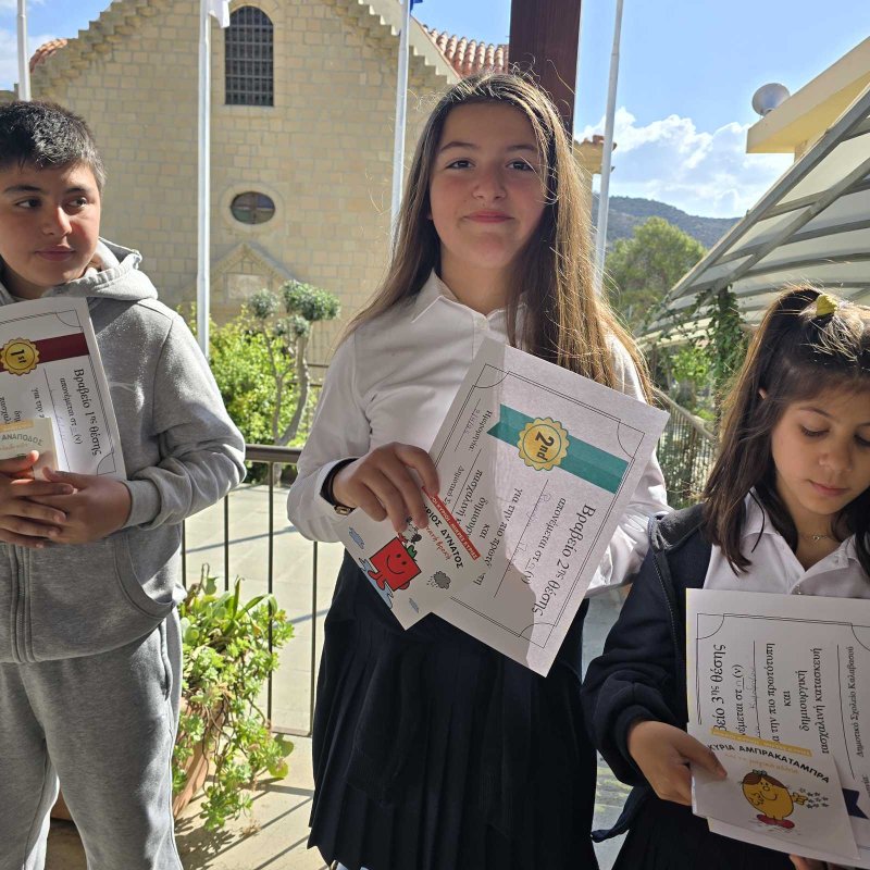 Μετά τον διαγωνισμό των πασχαλινών κατασκευών, που πραγματικά, ήταν αξιέπαινη η προσπάθεια όλων των παιδιών, ακολούθησε η βράβευση των επιτυγχόντων του διαγωνισμού, αλλά και η τιμητική διάκριση των μαθητών που συμμετείχαν. Εξίσου σημαντική ήταν και η συμβολή των παιδιών που δεν κέρδισαν κάτι, αλλά κέρδισαν την εμπειρία και το δέσιμο με την οικογένειά τους για να δημιουργήσουν, να καλλιεργήσουν τη φαντασία τους και να αυτενεργήσουν χρησιμοποιώντας πάντα υλικά ανακυκλώσιμα ή με επαναχρησιμοποίηση υλικών. Στο τέλος, όλοι κερδίζουν κι αυτό είναι το νόημα! Ευχαριστούμε όλα τα παιδιά που συμμετείχαν!